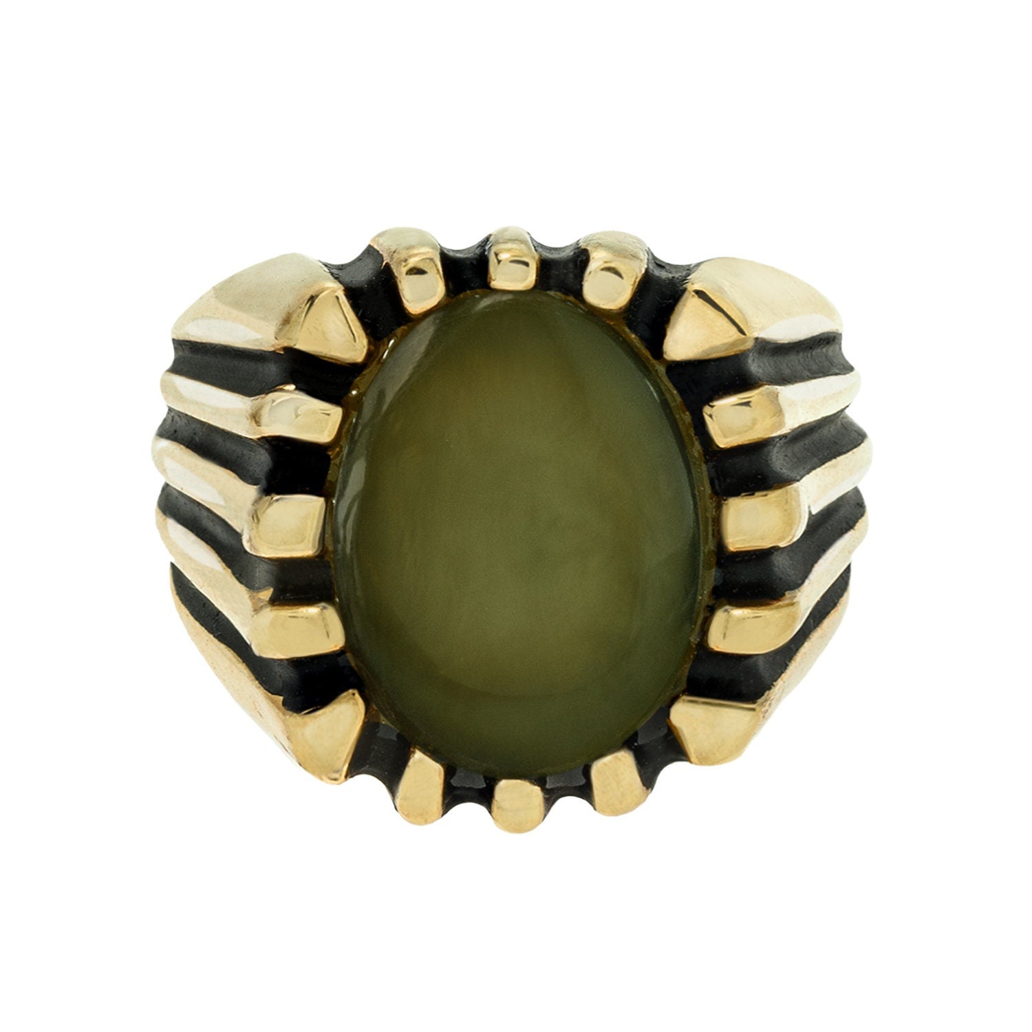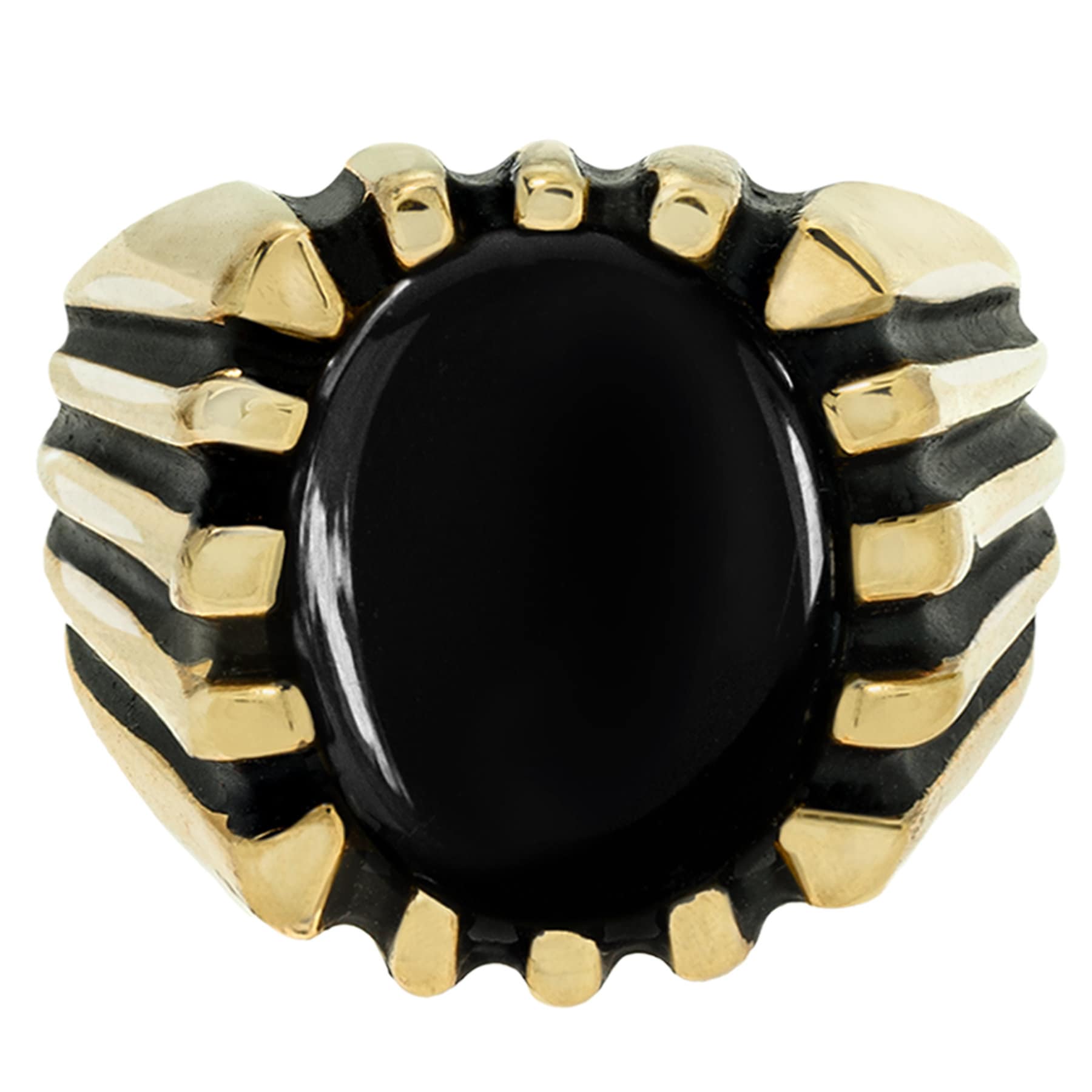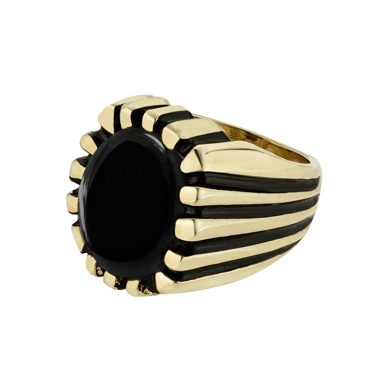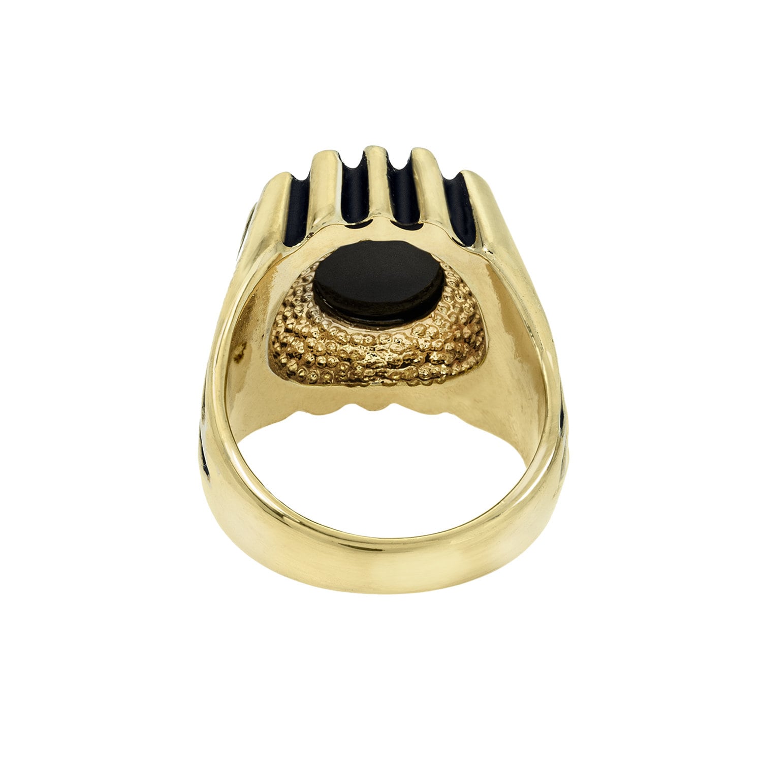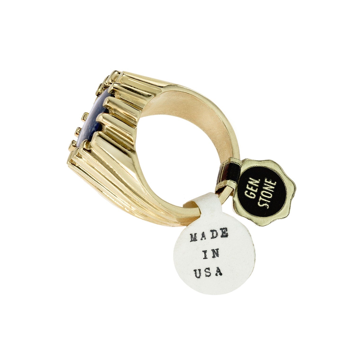 Vintage Ring 1980s Mens Genuine Sodalite 18kt Gold Plated Ring Unisex Jewelry #R1960 - Limited Stock - Never Worn Vintage 1980s Unisex Ring Made in Providence, RI, USA 18kt Gold Plated Genuine Sodalite Onyx Size 3/4" X 1/2" Stamped - 18k HGE Awesome and unique ring! More Men's & Unisex Vintage Rings