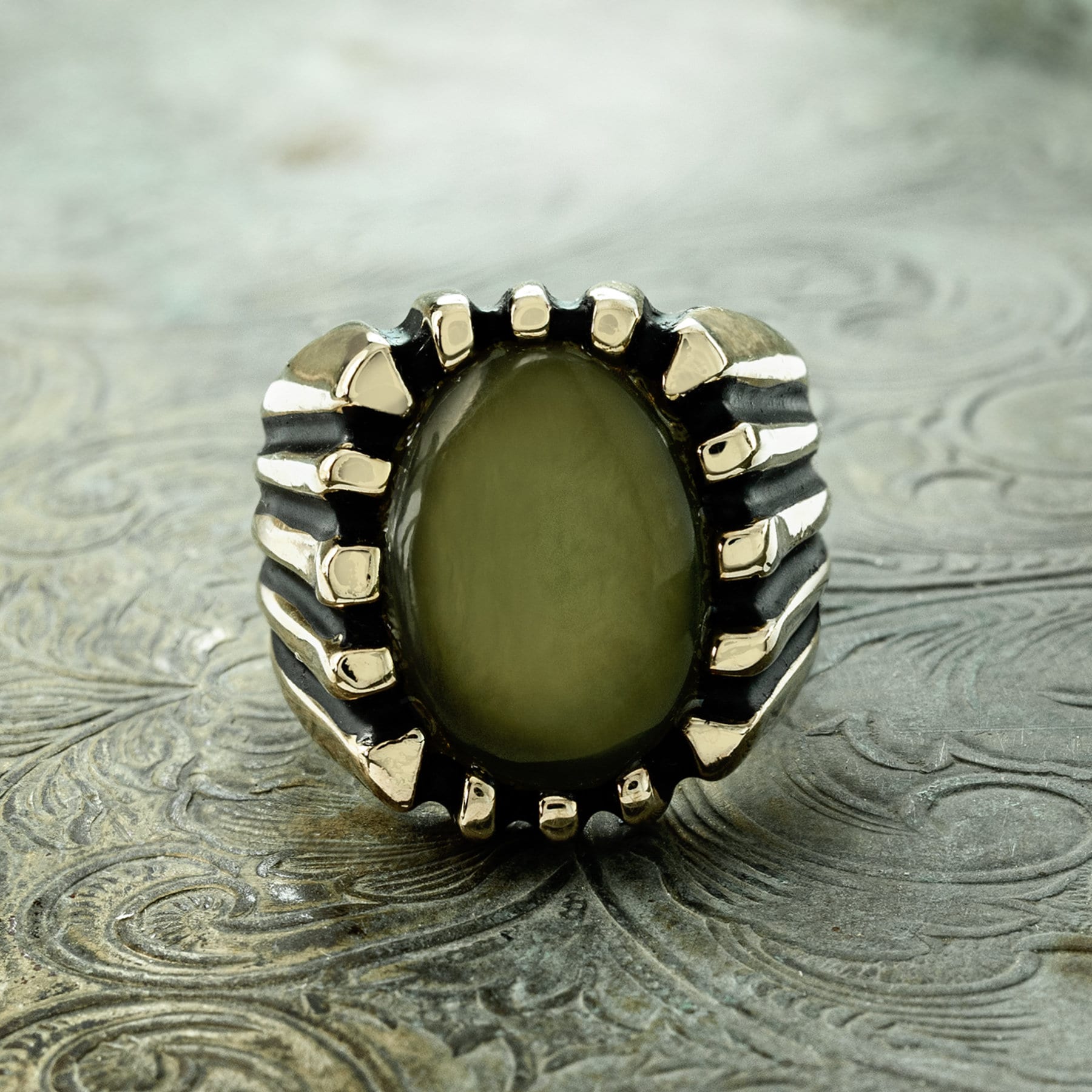 Vintage Ring 1980s Mens Genuine Sodalite 18kt Gold Plated Ring Unisex Jewelry #R1960