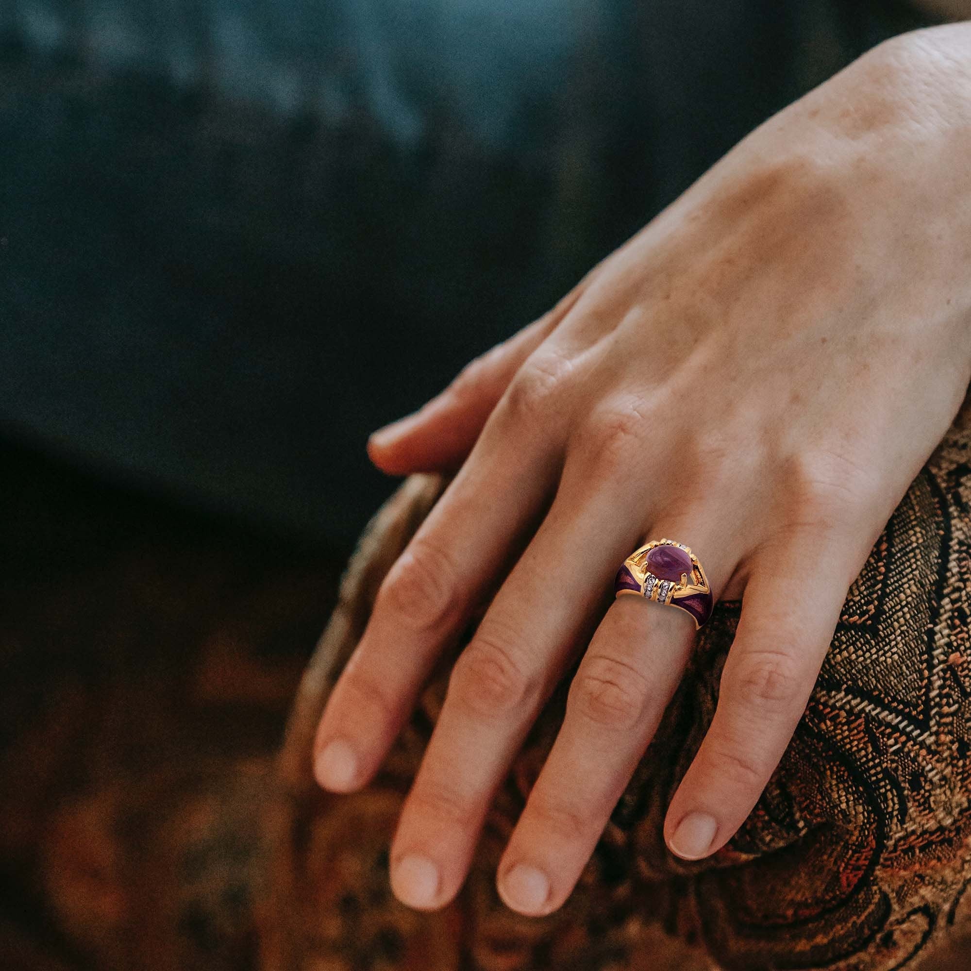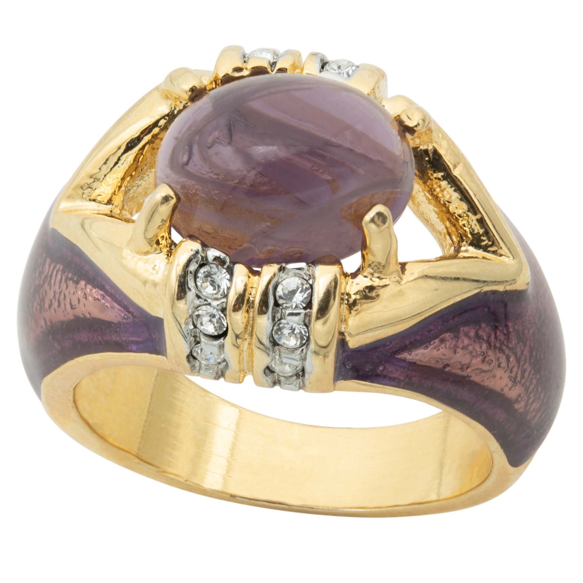 • Vintage Ring 1990's Moonstone, Emerald, or Amethyst and Clear Crystals Dome Ring Womans Antique Jewlery