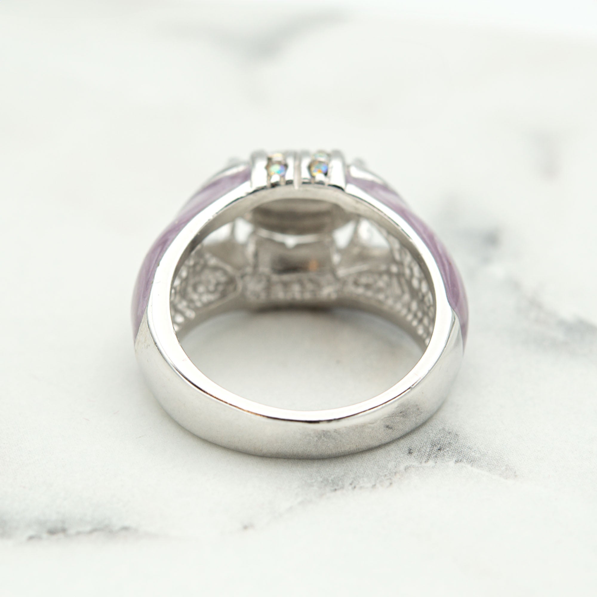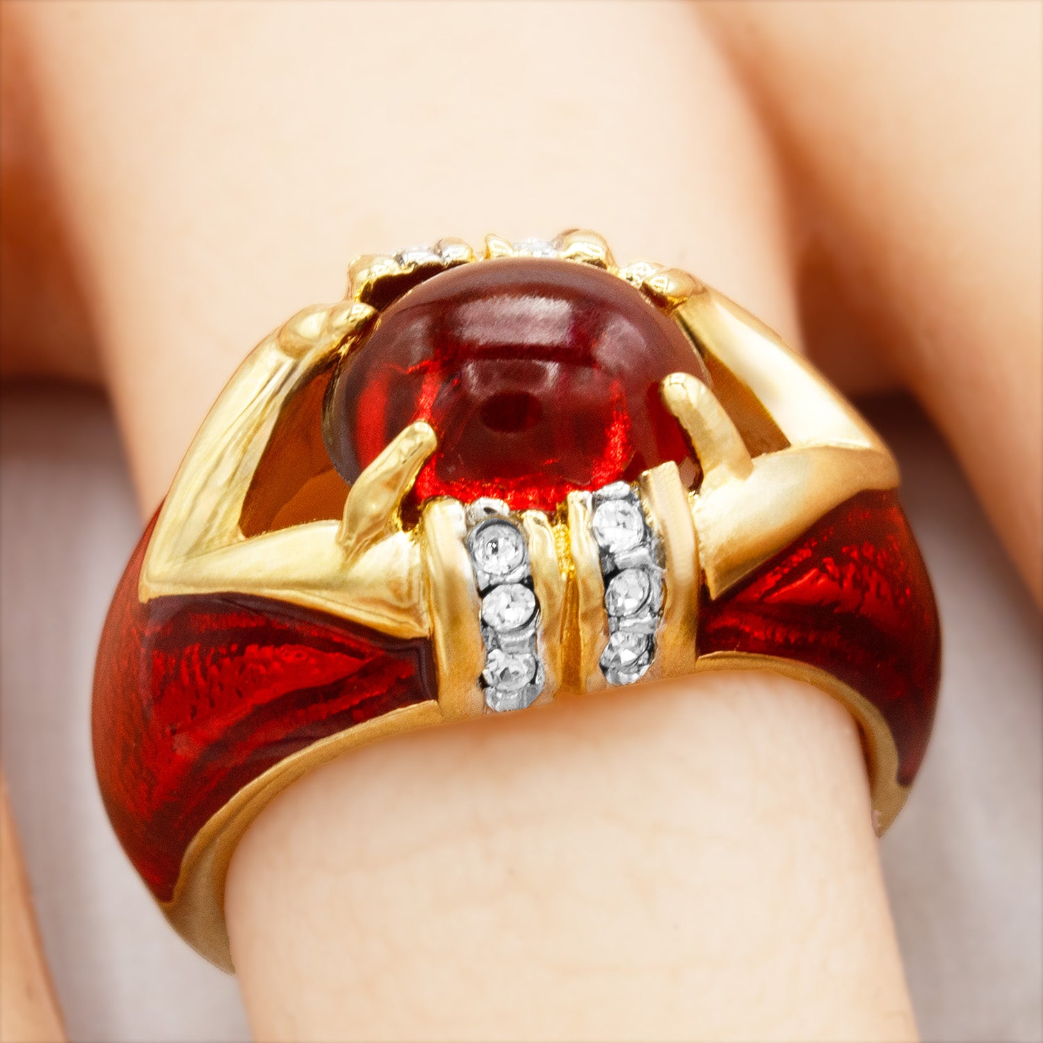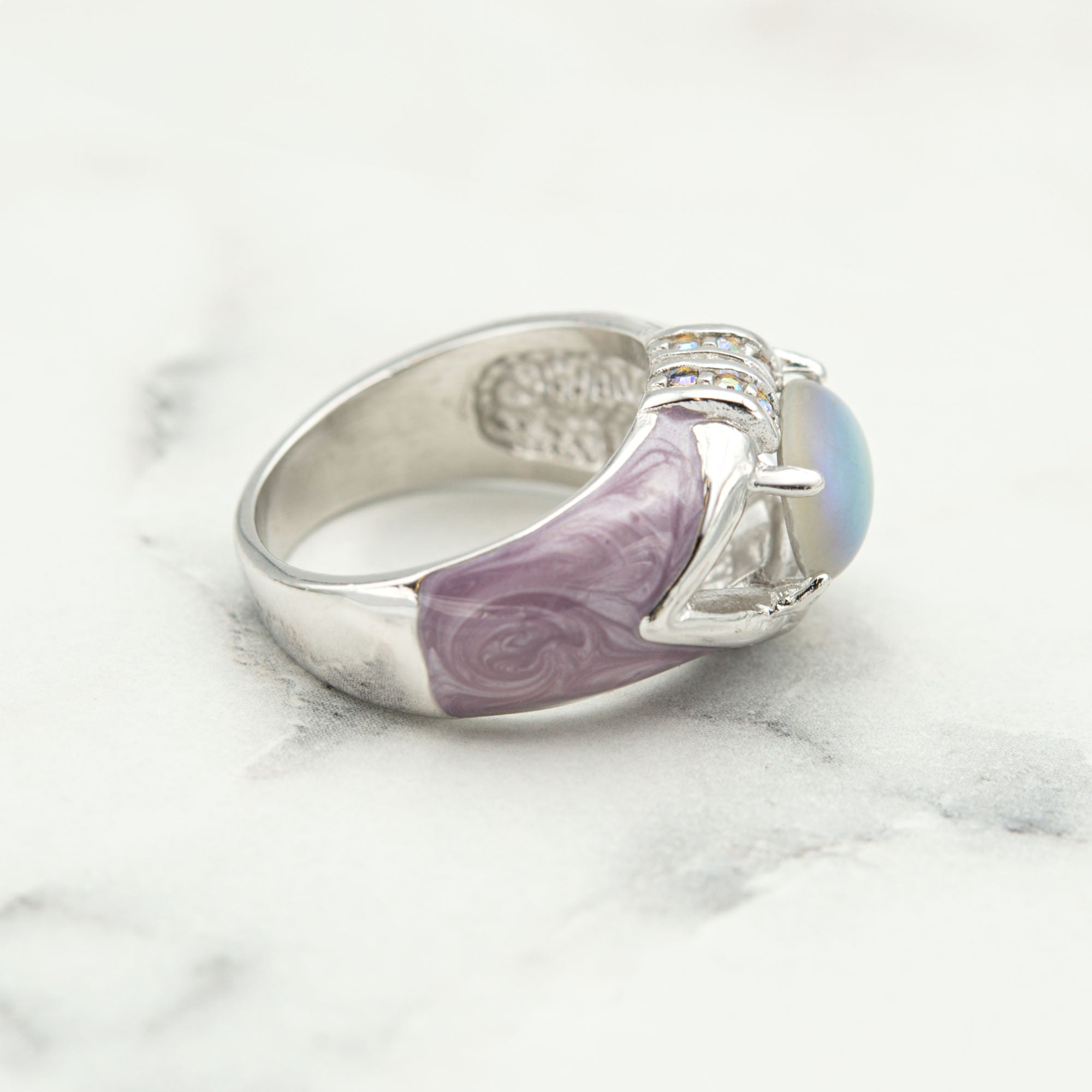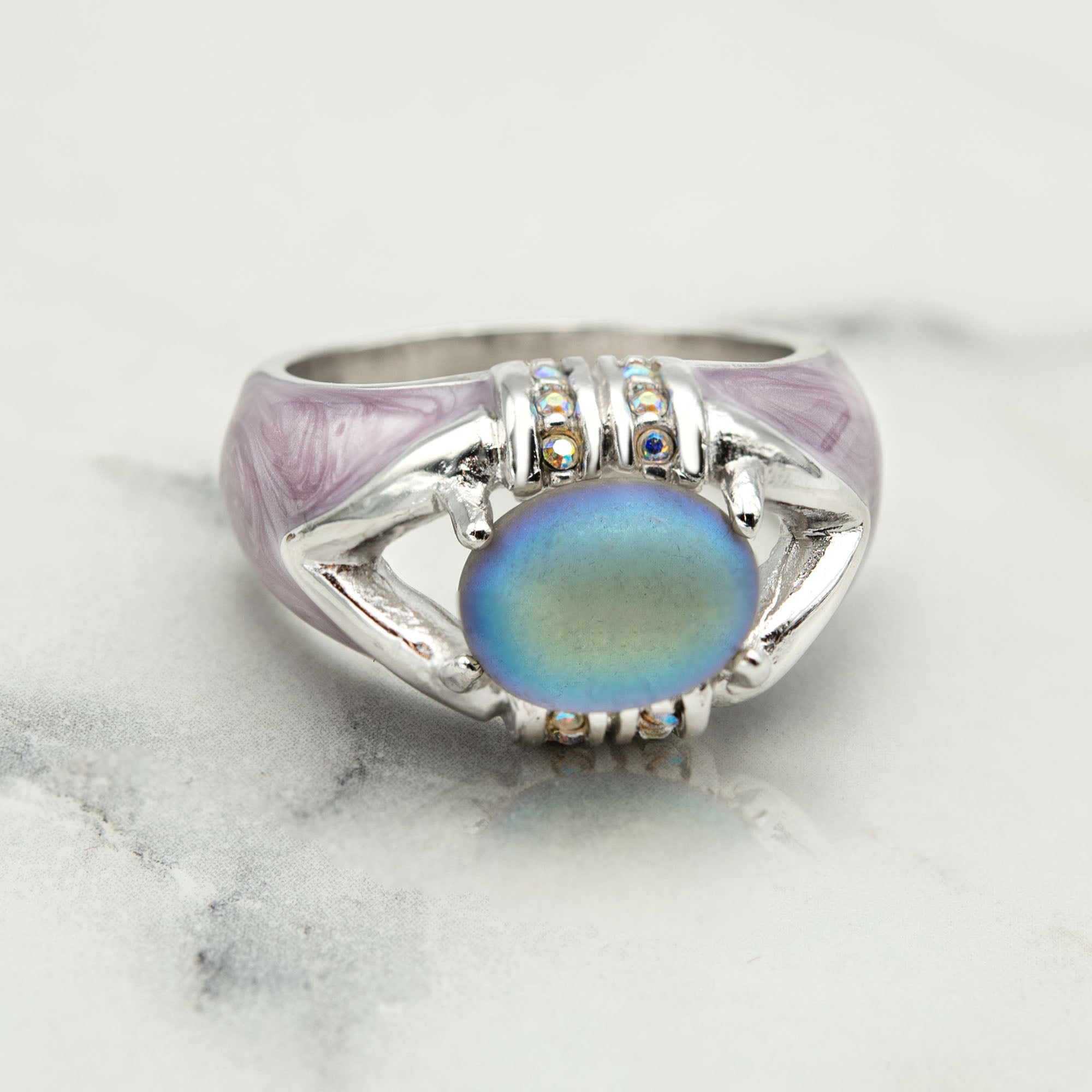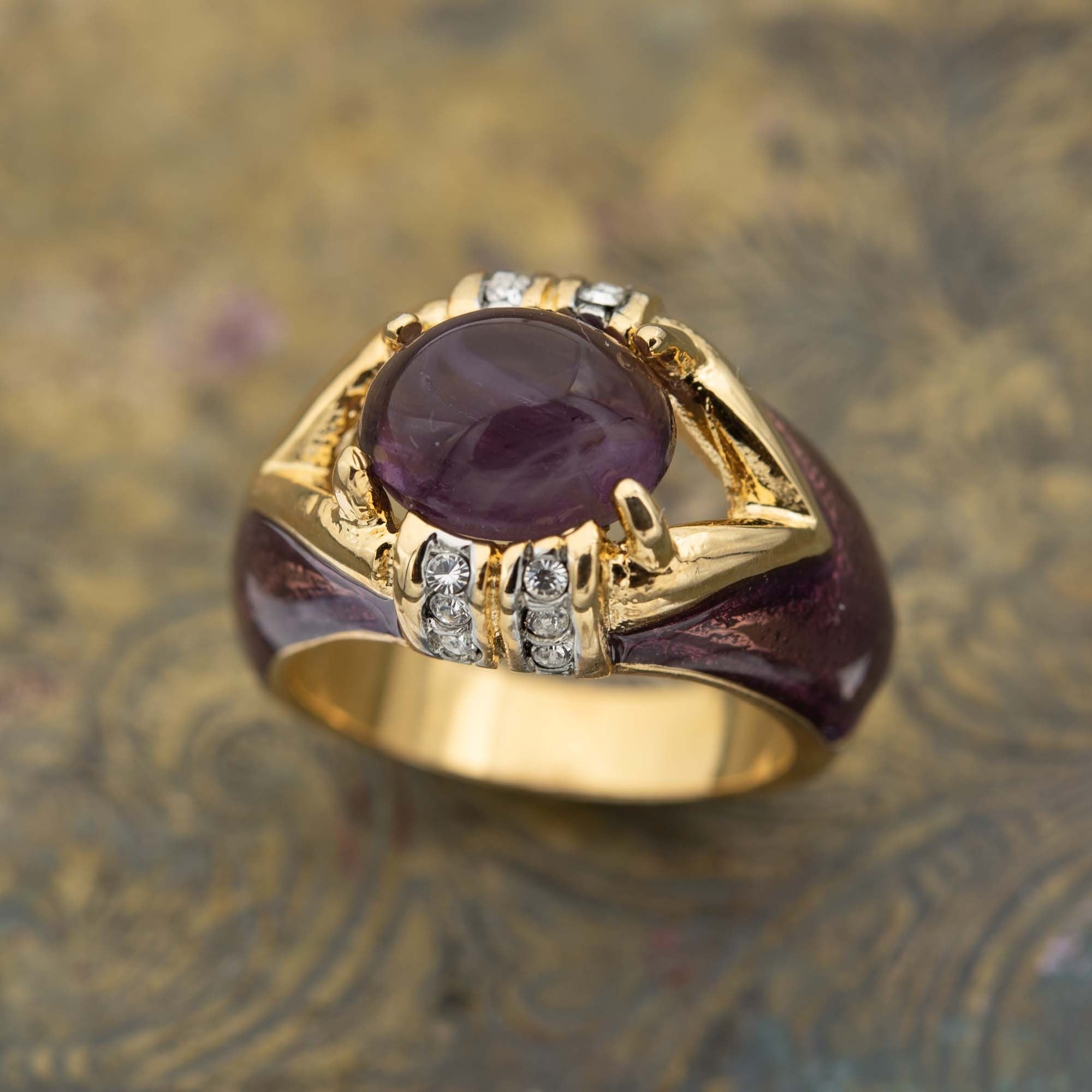 Vintage Ring 1990's Moonstone, Emerald, or Amethyst and Clear Crystals Dome Ring Womans Antique Jewlery