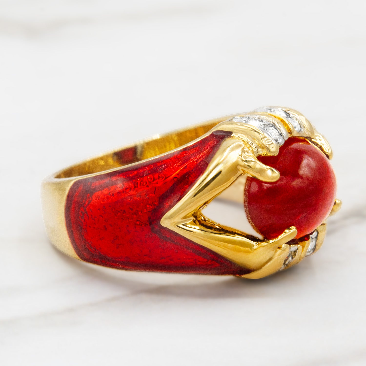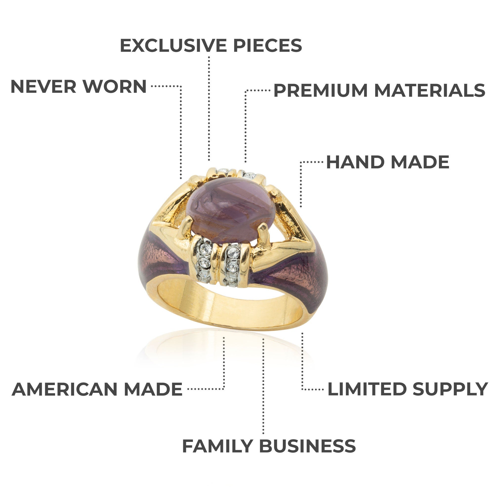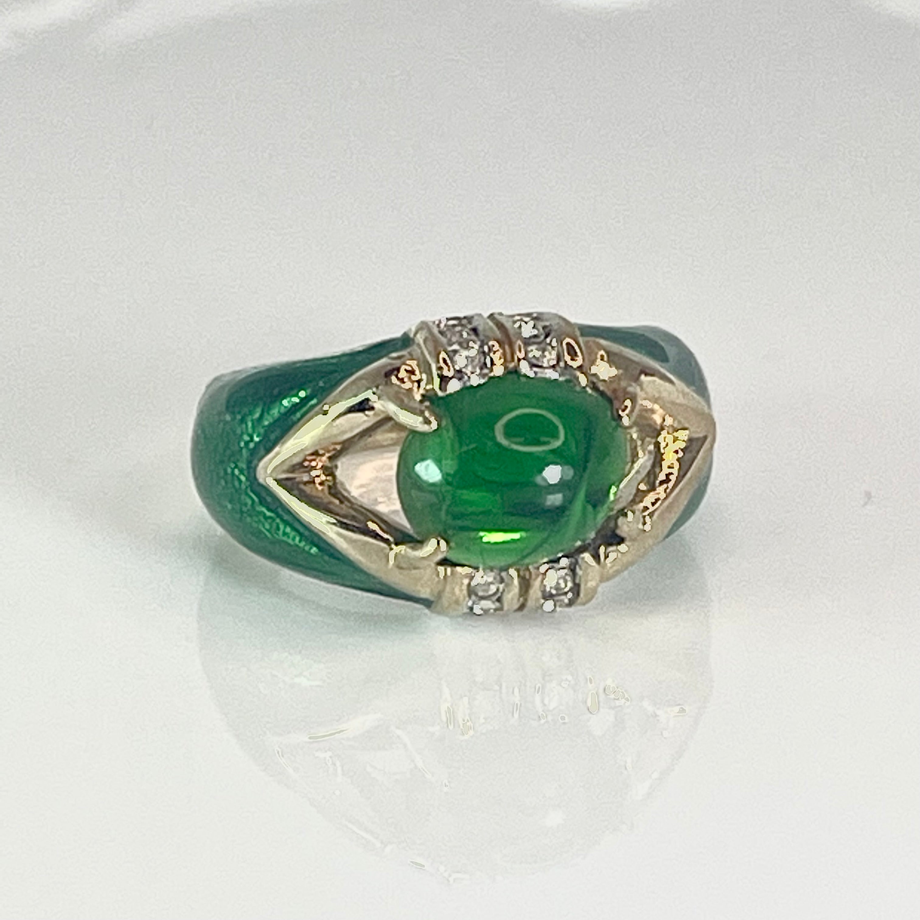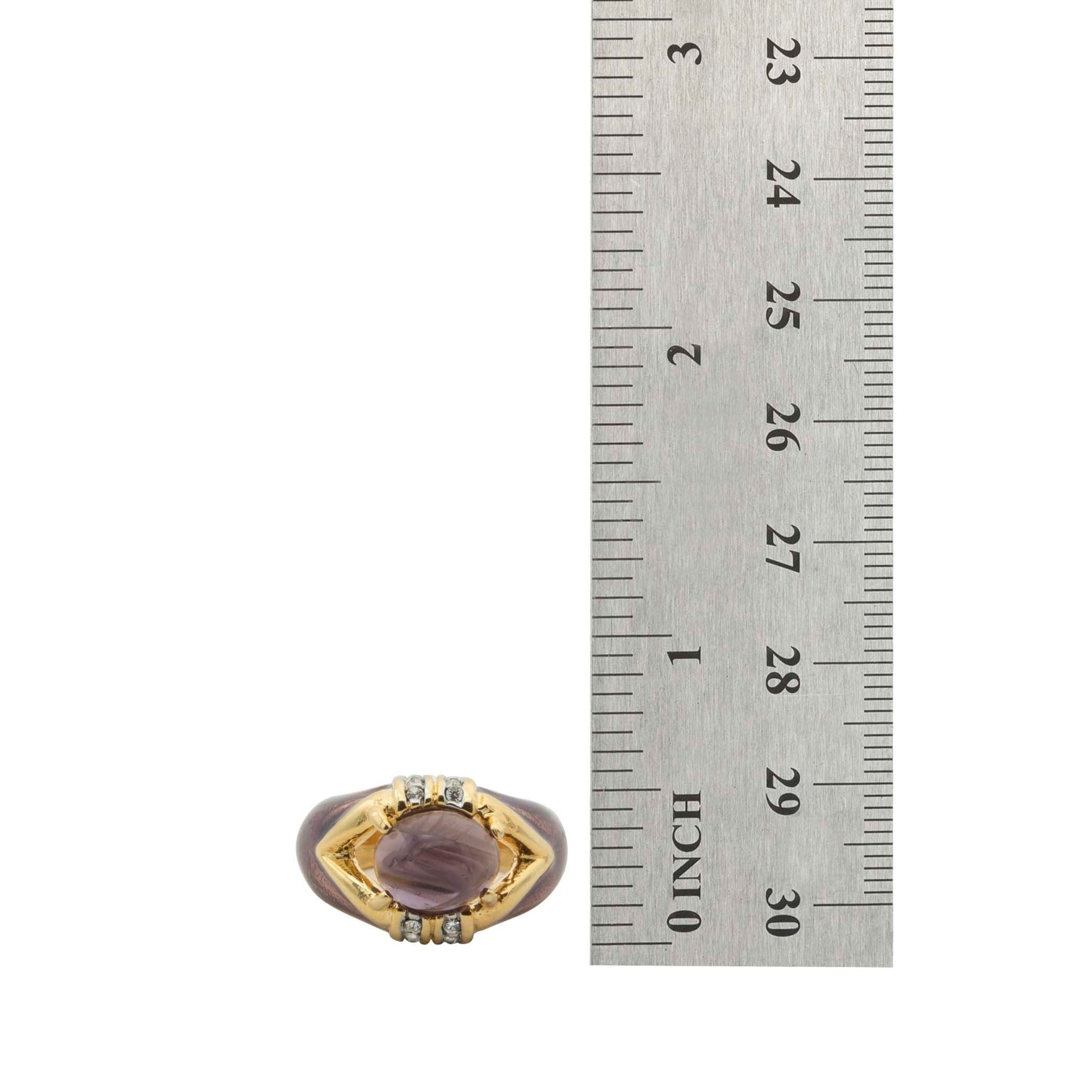 Moonstone, Emerald or Amethyst Cabochon Crystal 18k Yellow Gold Electroplated Hand Painted Epoxy Made in Providence, RI, USA Circa 1990 Stamped - 18k HGE
