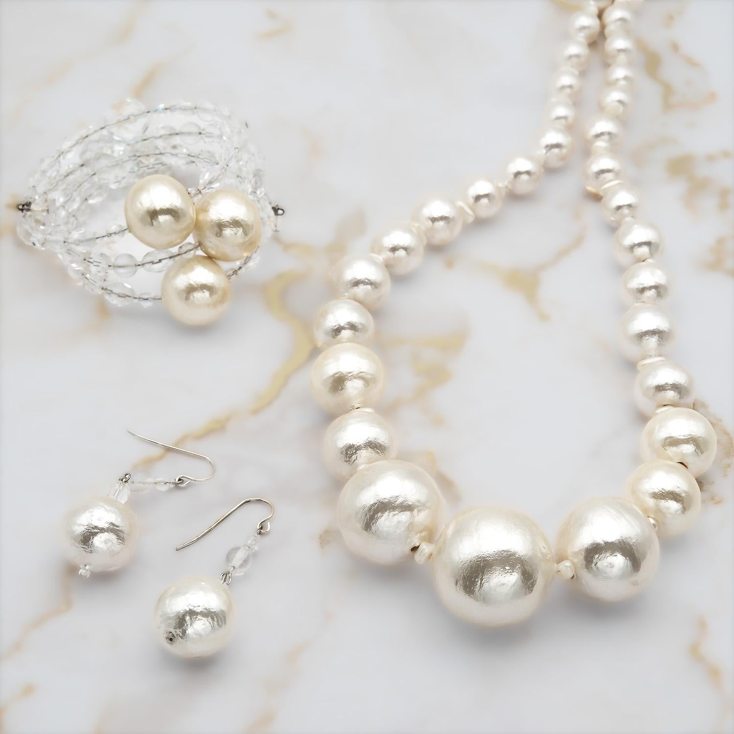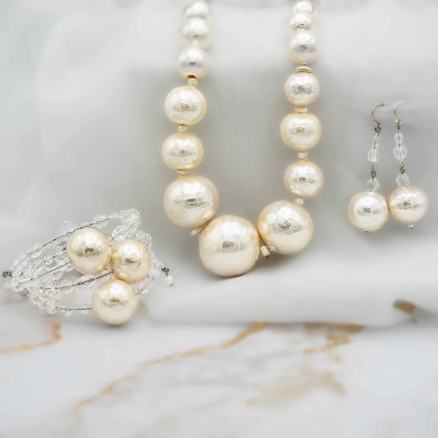 Discover the timeless elegance of our exquisite Vintage Oscar De La Renta Necklace, Earrings and Bracelet sold seperately. Graduated beads are seperated with freshwater pearls adding elegance to the iridecent ball beads. This statement piece is a perfect blend of classic sophistication and vintage charm, ideal for any woman who appreciates the beauty of designer jewelry.